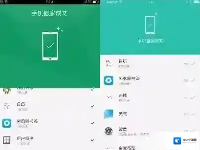 4、这时我们可以看到两个手机间正在“搬”数据,迁移比例达到100%时,会提示“手机搬家成功”,到这里整个搬家过程就全部完成。