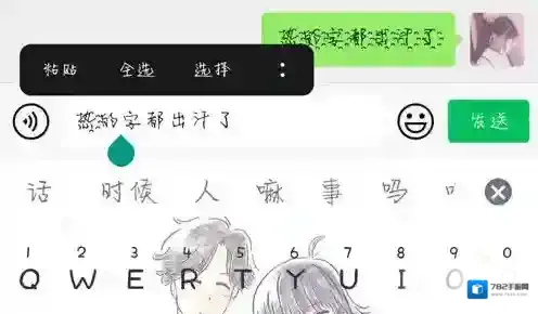 6、我们可以直接复制“ ҈ ”符号,使用粘贴的方式在字体之间插入该符号,然后将其发出就会变成热的字都出汗了效果。