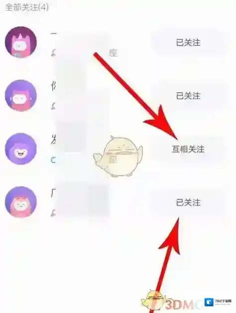 7、点开之后就可以看到自己关注人的列表,其中还包括关注自己的人。