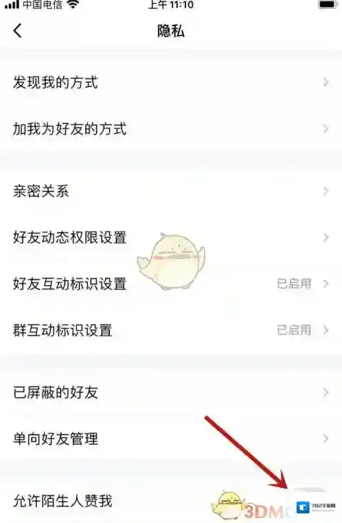 4、跳转新页面后,查找并点击允许陌生人赞我右侧按钮。