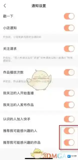 4、进入通知设置,将推荐我可能感兴趣的人和推荐我可能感兴趣的作品关闭即可。