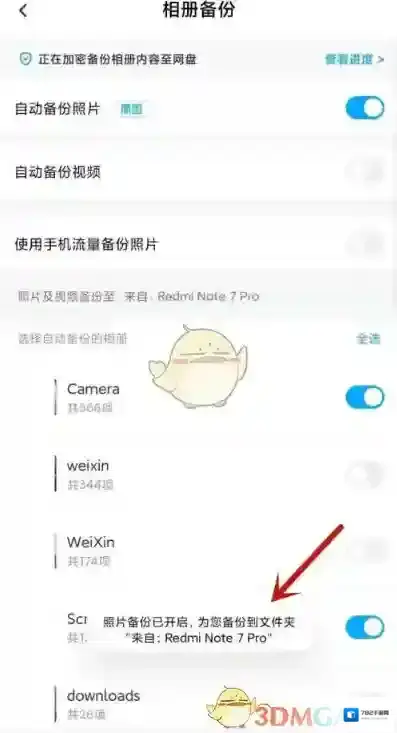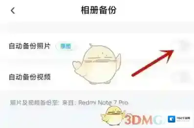 5、跳转新界面后,点击自动备份照片右侧按钮,按键由灰色变成蓝色,就成功开启。