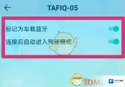 6、打开标记为车载蓝牙的开关(如有需要也可以开启连接后自动进入驾驶模式的开关)