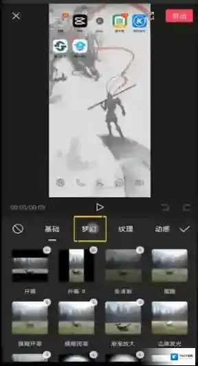 4、在弹出的特效窗口,选择“梦幻分类”;