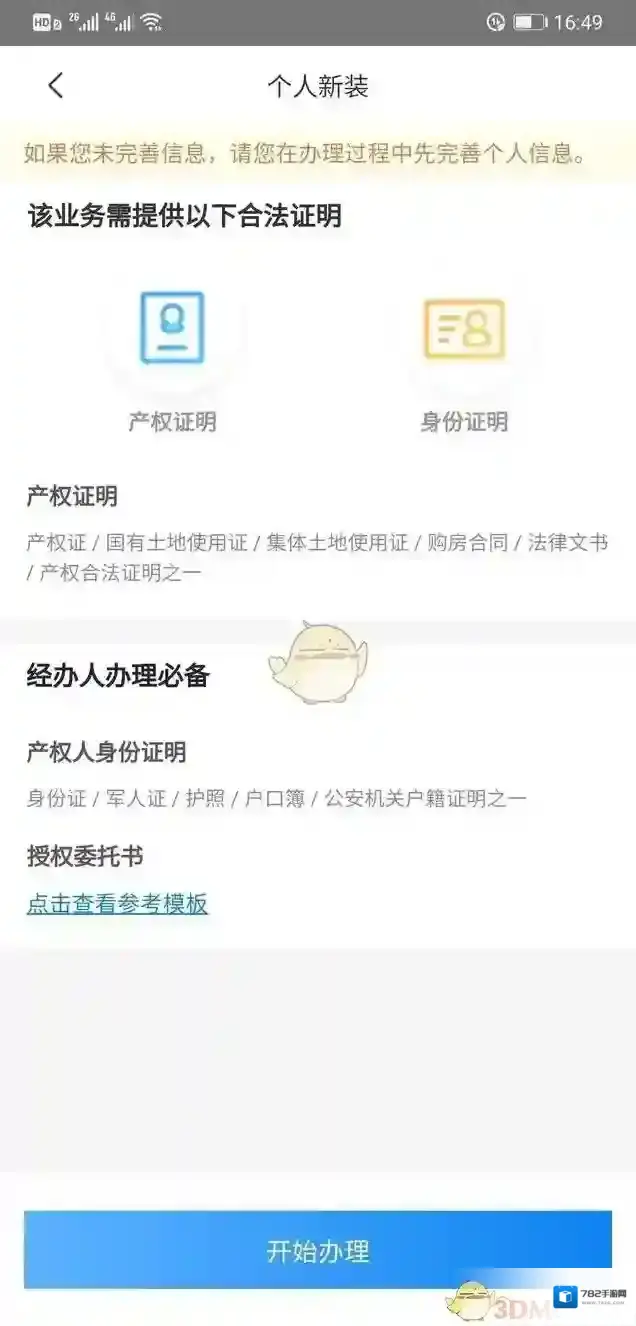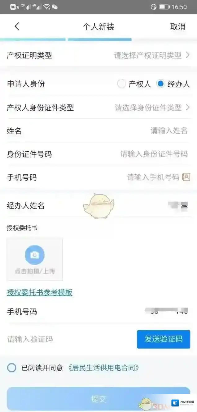 5、这里分,产权人与经办人两个选项,这里就是前面说到的身份注册问题,如果以产权人注册就省去了委托书和填写委托人的步骤,系统直接带入即可。而选择经办人,这些都是必须的。