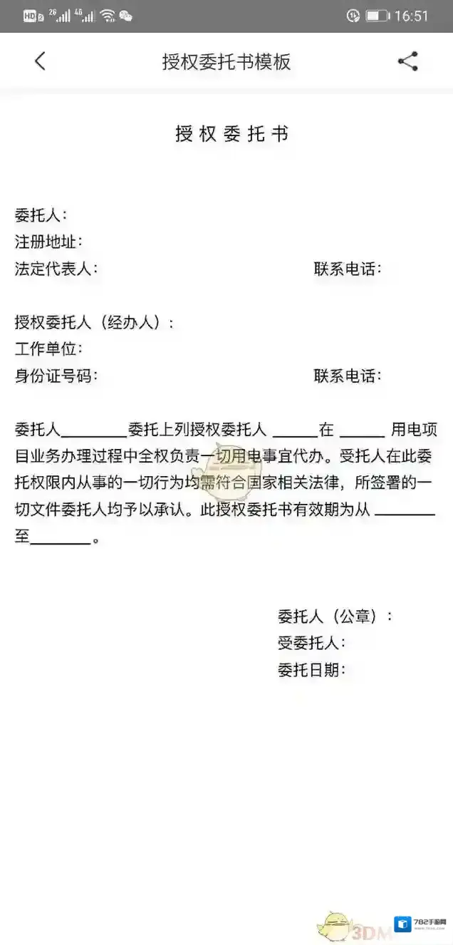 4、委托书有模板,按照模板打印出来填写好拍照上传即可,如果是个人安装就不用填写法人这一项,其他都需要填,署名地方填写名字盖章就可以了