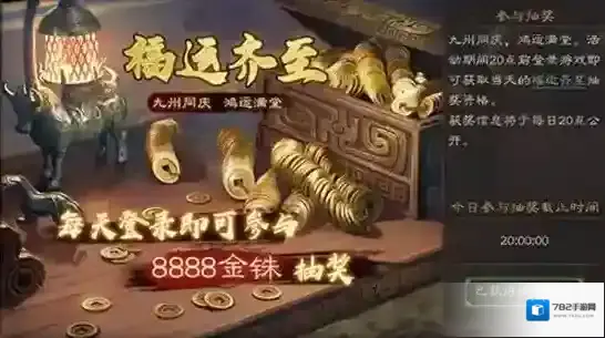 在活动期间,所有20点前登录游戏的玩家都可获得当天的福运齐至抽奖资格,抽取8888金铢大奖,获奖信息将于每日20点公开。