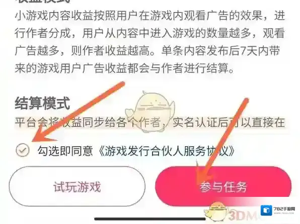 3、选择一款游戏,再勾选协议,点击参与任务即可。