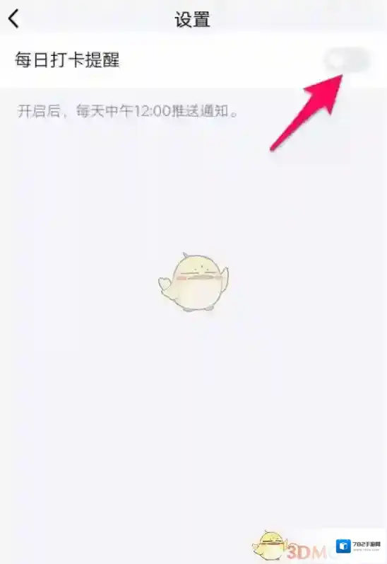 5、点击“每日打卡提醒”右边的开关,然后它将会在每天的12:00推送通知;