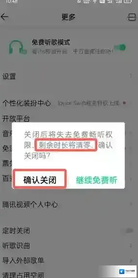 5、需要注意的时,每次关闭免费听歌模式,累计的免费听歌时长将被清零。