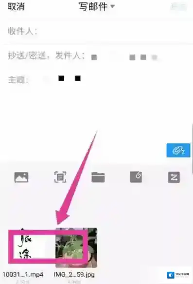7、返回到写邮件界面,能看到底部显示的附件,就是添加的图片视频。如图