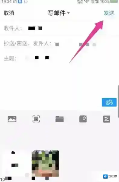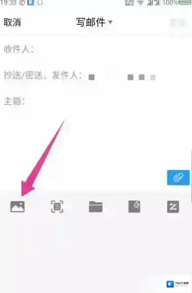 4、设置好收件人后,能看到右下角有个附件图标,点击打开附件。如图