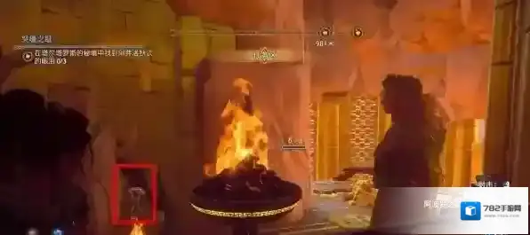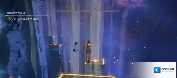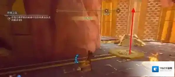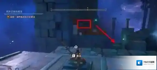 跳上第二个控制台房顶,站在圆形机关上使用阿波罗之箭点燃缝隙后的火盆。