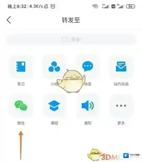 4、在转发至界面,选择微信,转发PPT。