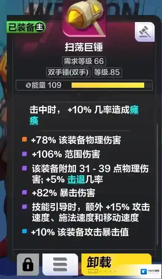 剩下的防具都用紫装补血抗即可。武器选择双手锤: