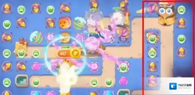 4.地图左半段的障碍物消除后,将炮塔中的雪球塔升级至满级,减速敌人;