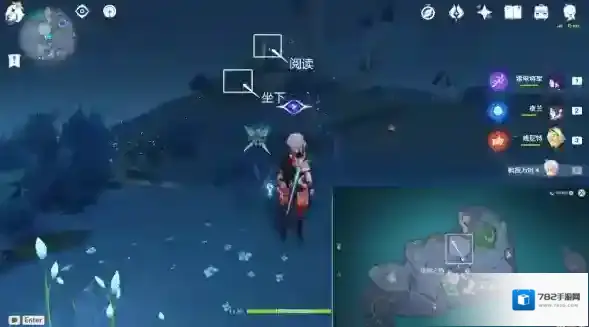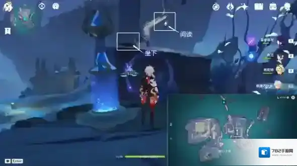 往地图的西南方向走,进入密室内部,按图中指引,前往石头位置坐下