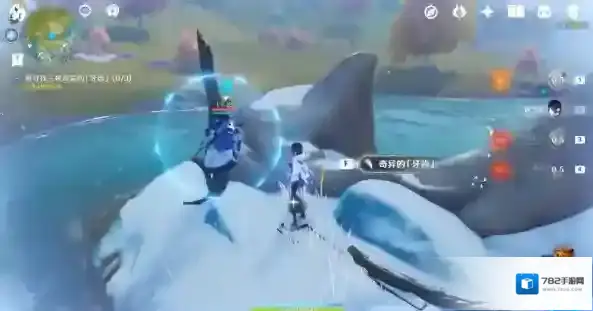 击败冰丘丘人,破坏透明防护罩,进入内部可拾取牙齿