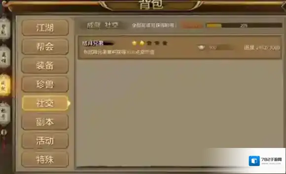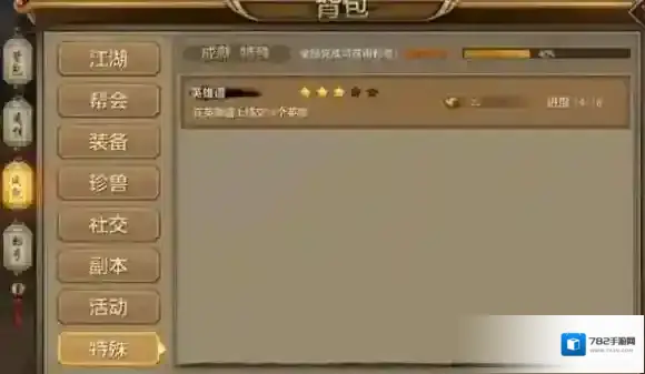 帮会抢红包,帮会发红包,帮会聊天,帮会练功,帮会行酒令,帮会炼金,帮会守卫,七个系列。全部完成可以获得称号,草莽英雄。