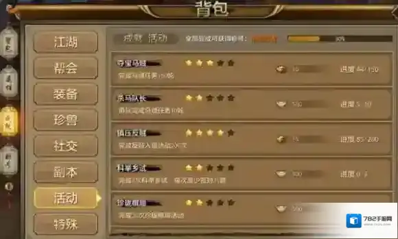 夺宝马贼,杀马队长,镇压反贼,科举乡试,珍珑棋局,黄金棋子,宋辽大战,宋辽获胜,八个系列。全部完成可以获得称号,地魁行者。