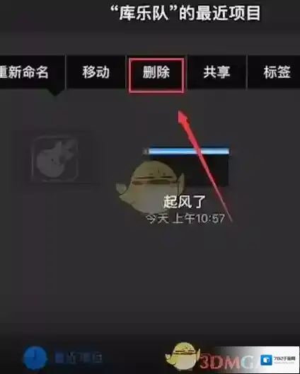 4、如果已经导出到库乐队APP中的话,需在进入库乐队删除。具体操作:先开库乐队点击并进入我的乐曲,后长按歌曲点击删除在库乐队中删除。