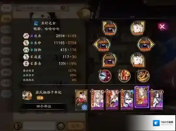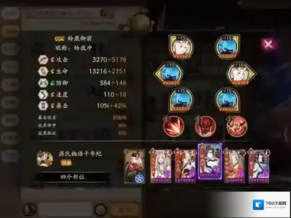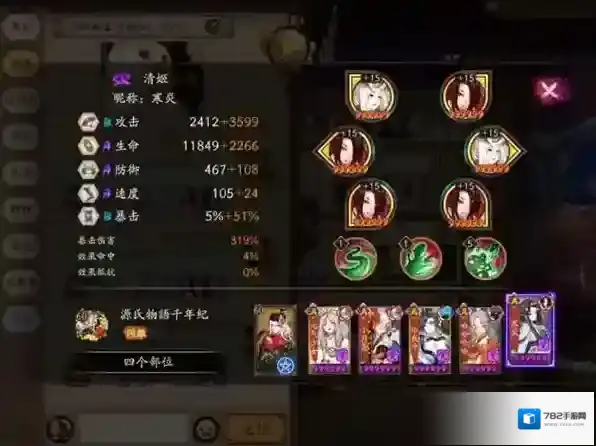 御魂:破势歌姬或者心眼歌姬铃鹿御前、爆伤清姬、心眼丑女、招财追月、招财缘结神