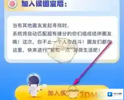 3、跳转进入至结伴圈后,在其中会对该功能进行介绍,了解过后在下方点击“一键匹配”。