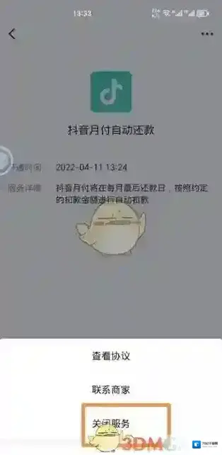 6、来到抖音月付自动还款的页面中我们可以看到开通的时间,在这里直接点击右上角的三点图标;