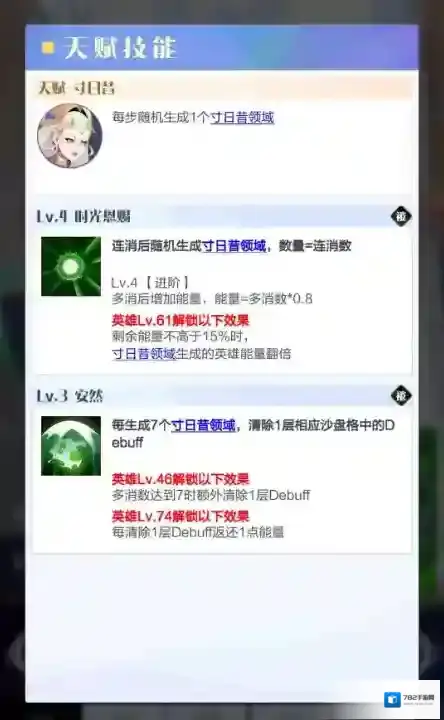 特点:独特的镜像技能使寸日昔能够对单个角色进行大额强化。有的消友可能会出现沙盘中个别角色形态值远高于其他角色的情况,而寸日昔的扬长避短则可以使高战伙伴最大化发挥自己的能力,同时附带的净化效果也可以有效反制沙盘debuff带来的负面影响。
