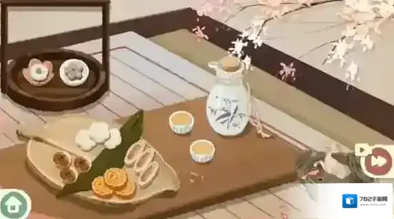 3、我们把碗同样放到左上角的框里去,再将桂花糕按如图所示的位置摆放。