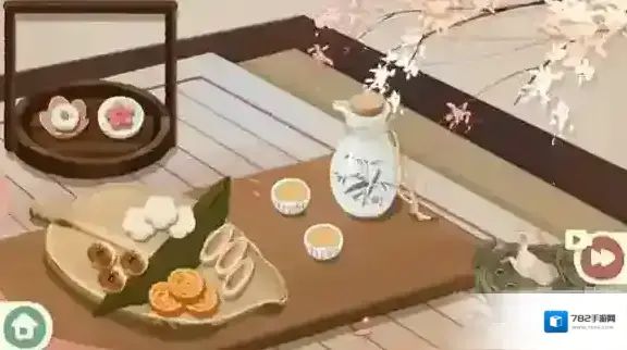 7、最后我们把桌子上的花瓣按如图所示的位置摆放好就可以通关了。