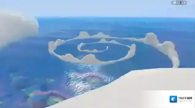19:50-19:55:从金山蓐收神宫向西北出发,前往从极渊欣赏超壮丽云漩奇观吧!云朵盘旋在海面的场景相当壮观呢!