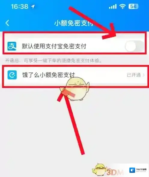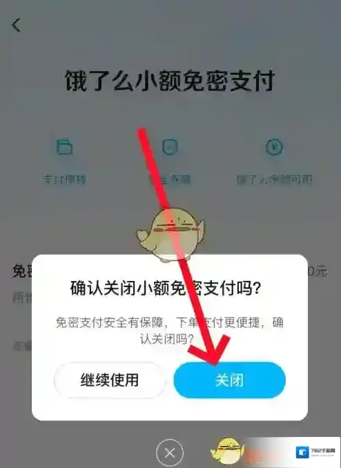 4、随后,取消勾选默认的支付宝免密支付选项,并选择“关闭饿了么的免密小额支付”。