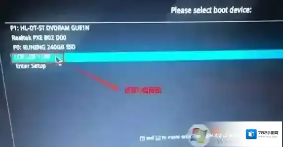 4、插入U盘启动盘,重启按ESC选择识别到U盘启动项,回车;