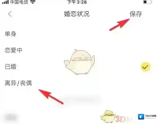5、勾选目标情感状况的选项后,点击右上角保存的选项即可修改情感状况。