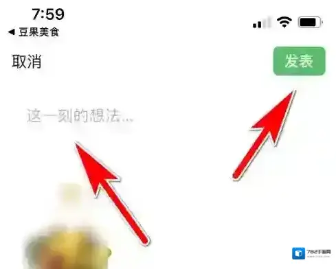输入内容后,点击右上角发表的按钮。