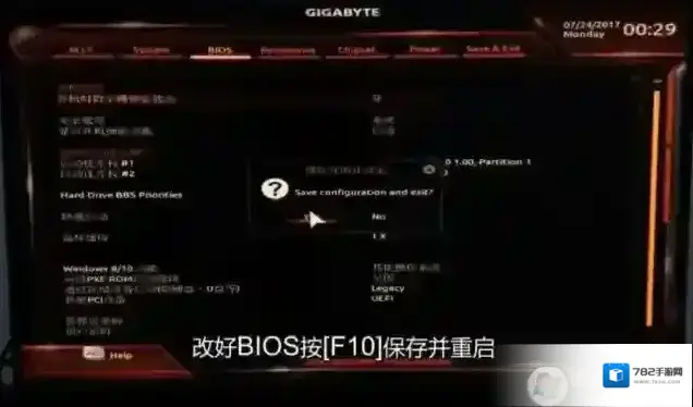 5、设置好BIOS之后,我们按下F10键,出现确定界面,保存并重启;