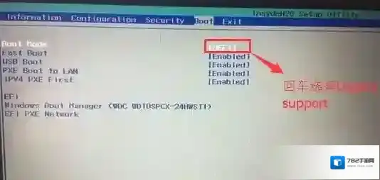 4、切换到Boot,把Boot Mode从UEFI改成Legacy Support,改传统引导,如下图所示;