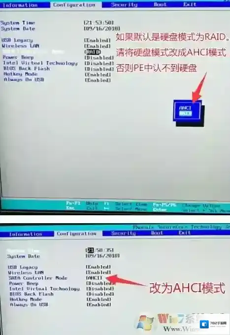 6、注意:再返回configuration这项,查看sata controller mode这项,如果默认硬盘模式为RAID,请将硬盘模式改为AHCI模式,否则进PE后不能认出硬盘,如果更改后记得按F10保存,如下图所示;