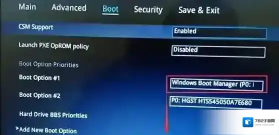4、继续把boot option#1选项改为普通引导的,boot option#1和boot option#2硬盘启动位置对换,设置第一启动项为普通硬盘引导,带Windwos Boot Manager的为UEFI引导分区,然后按F10保存设置;