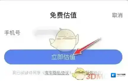 4、在下方弹出的窗口中确认手机号码,点击立即估值按钮即可。