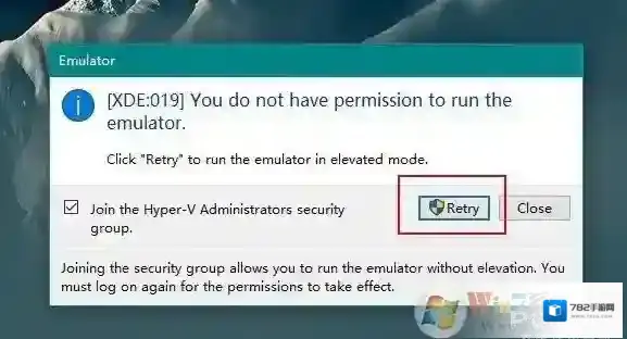 4、首次启动会弹出提醒,直接点击“Retry”即可