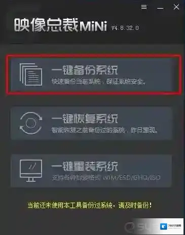 2、保存好未完成的工作后,点击一键备份系统。