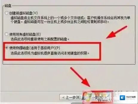 www.winwin7.com6、接着选择“使用物理磁盘(适用于高级用户)”,然后点击“下一步”,如图: