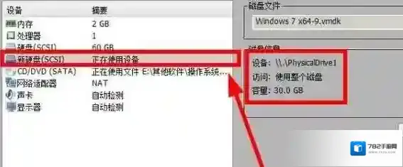 7、确保当前已经插入U盘到电脑上,选择“physicalDrive 1”,在使用情况中选择“使用整个磁盘”,点击“下一步”!8、接着编辑好文件名称,这里保持默认名称,点击“完成”,此时可以成功显示出添加的新硬盘,包括设备信息和设备容量大小,点击“确定”