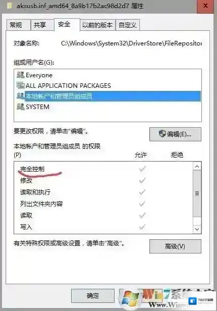 7、回到文件夹安全界面,设置权限项目窗口,然后点击勾选完全控制权限即可,完成后点击底部“确定”。
