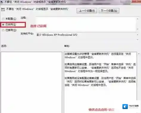 8.选择 不要在“关闭Windows”对话框显示“安装更新并关机”并双击