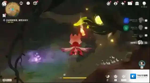 2,操控「花灵」,靠近荆棘枝条短e一下,就能驱散紫雾