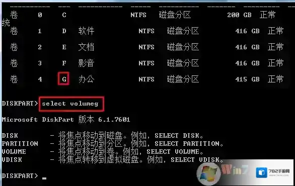 6、select volume x 选择要操作的卷