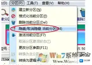 选中该分区,然后点击“分区”菜单,并选择“隐藏/取消隐藏 当前分区”项。